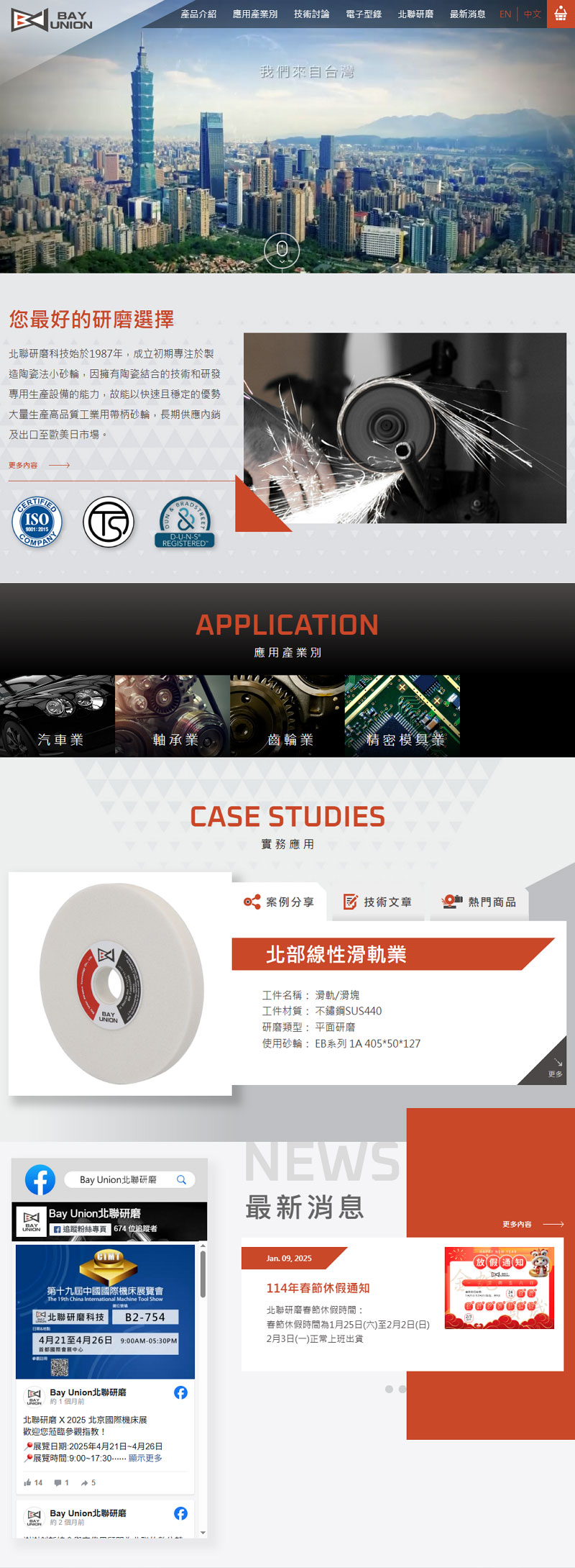 北聯研磨科技的產品頁設計聚焦於清楚分類與應用導向,兼顧專業度與使用體驗: